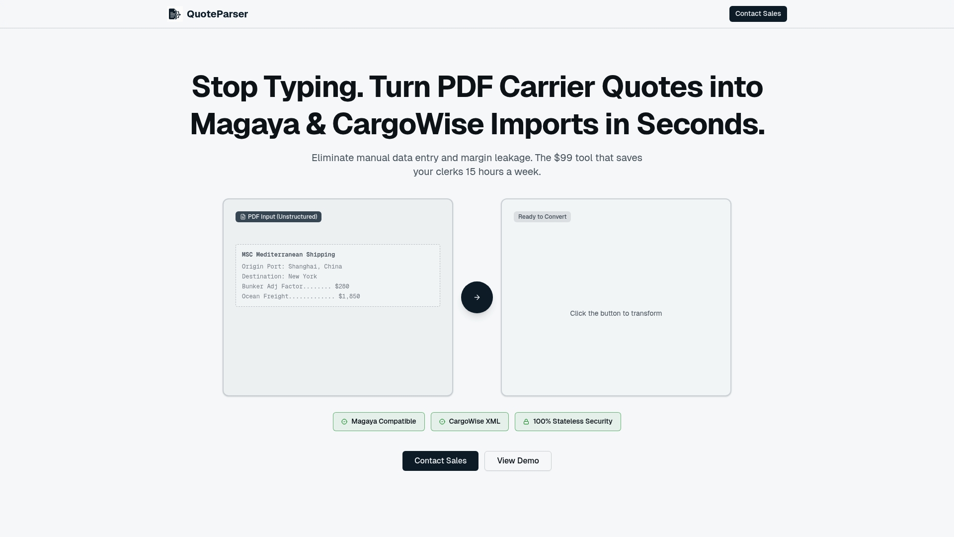 For SMB freight forwarders looking to cut operational costs while improving accuracy, QuoteParser delivers immediate ROI. You maximize your CargoWise One investment by automating the data entry that still consumes significant manual effort.